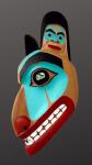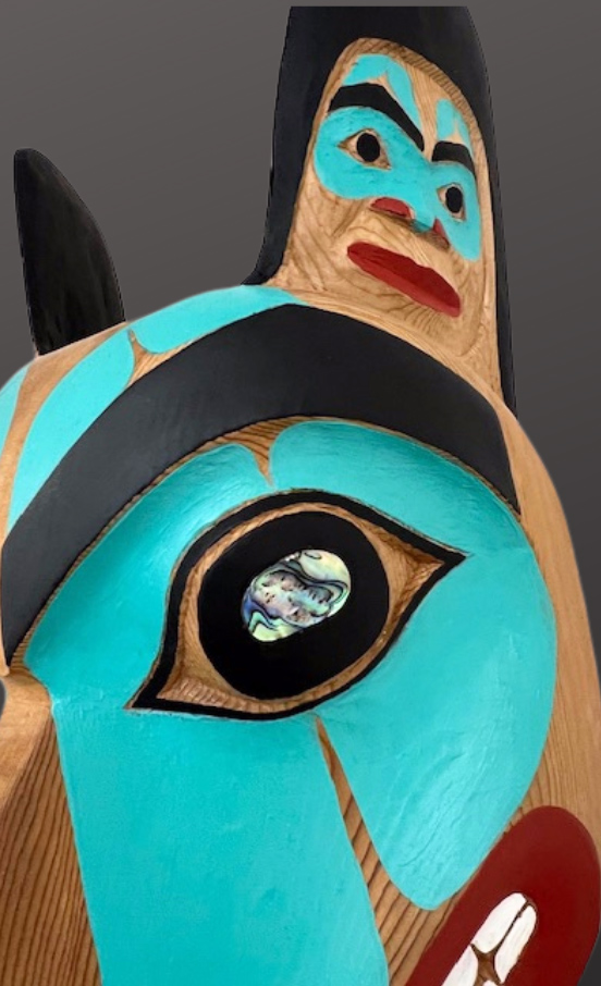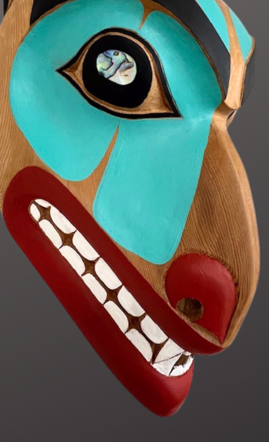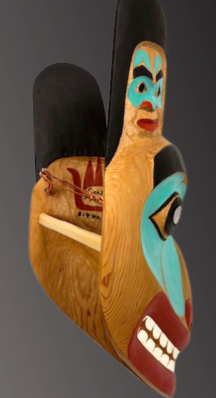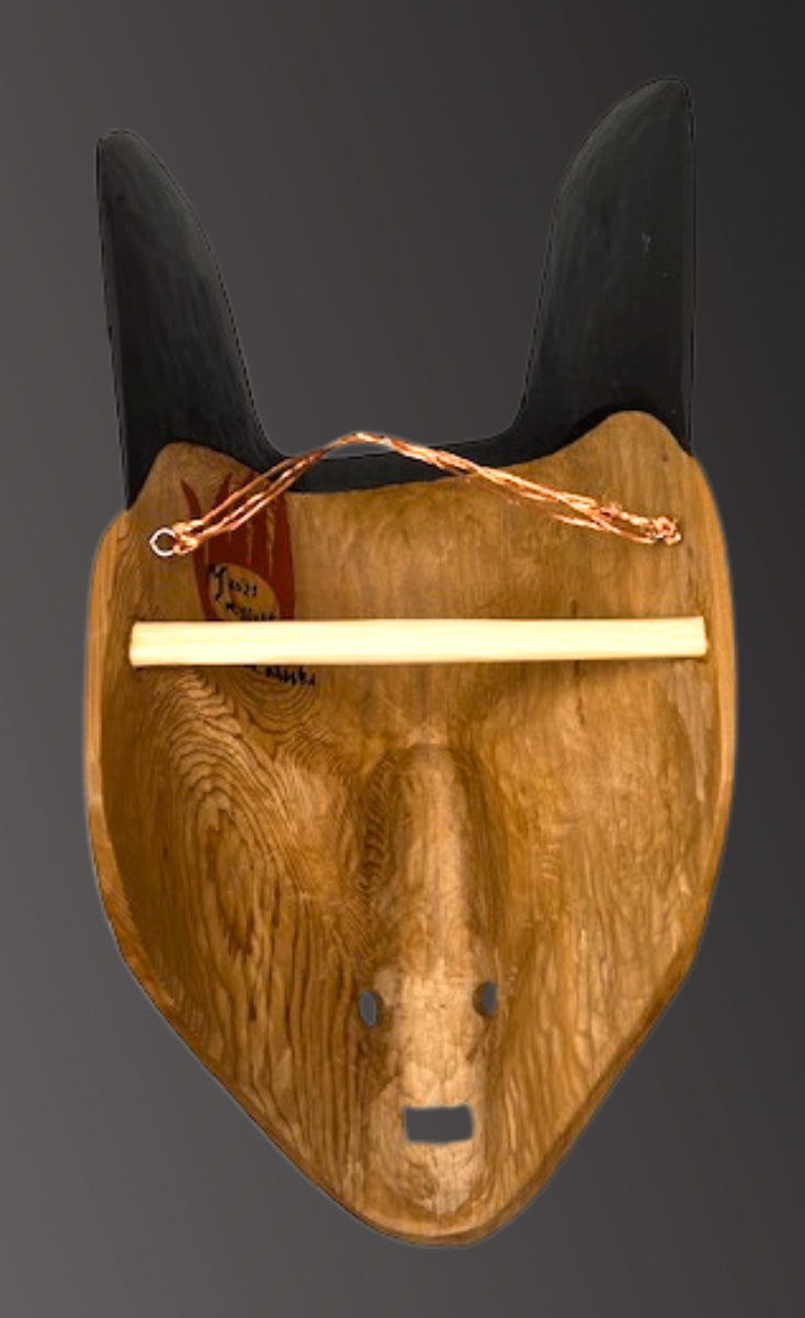 Tsimshian carver Mark Sixbey carved this wolf mask from red cedar. Had painted with abalone inlay eyes, this mask is a good example of Mark’s use of Northwest coast formline design elements to create a unique, one-of-a-kind mask.