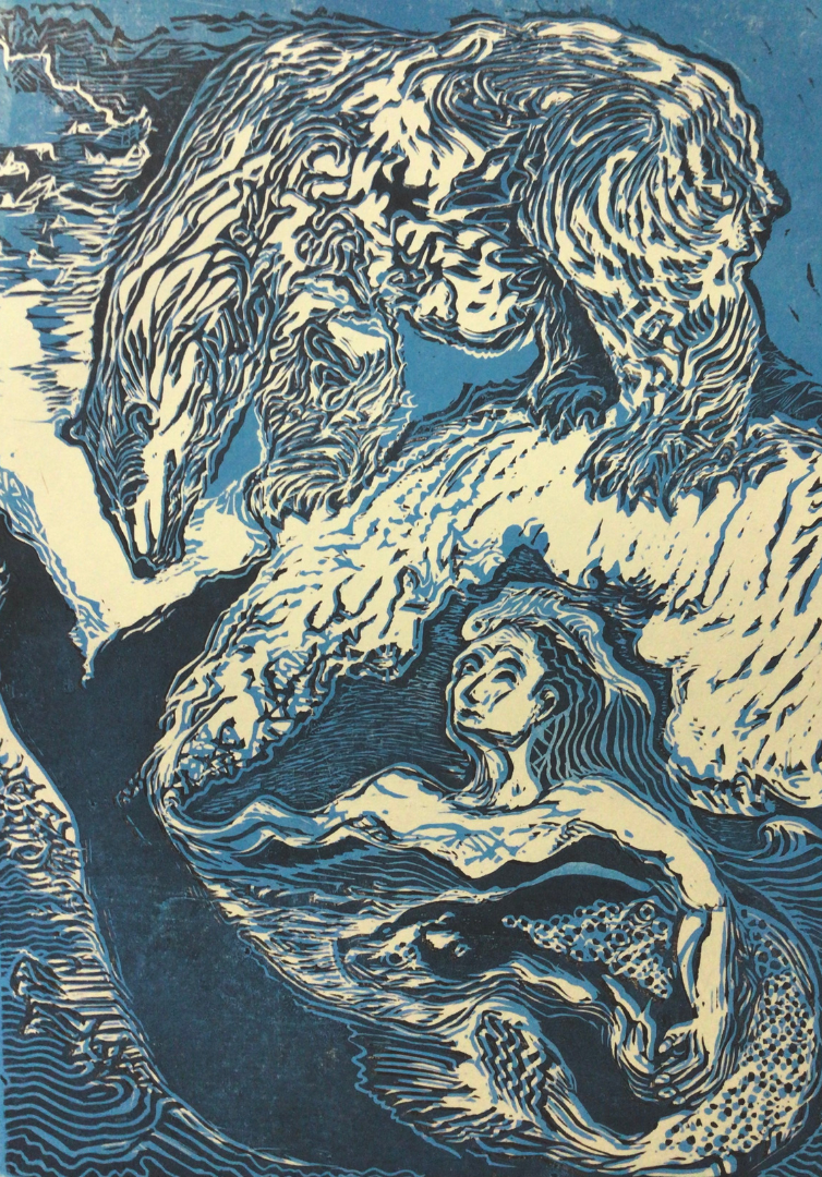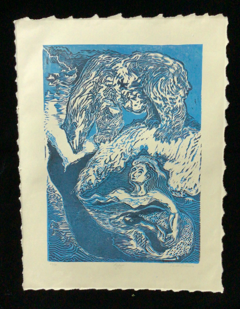This is a limited edition wood block print by Nome artist Karen Olanna. Signed and numbered 22/50.