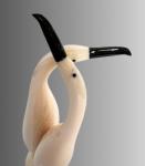 Ronald Apangalook, a Siberian Yup’ik artist from the village of Gambell, Alaska, created this beautiful, finely carved stylized figure of two Cormorants. This wonderful piece is carved from a single piece of walrus ivory with the eyes created from baleen and the bird's bills fossil walrus ivory.